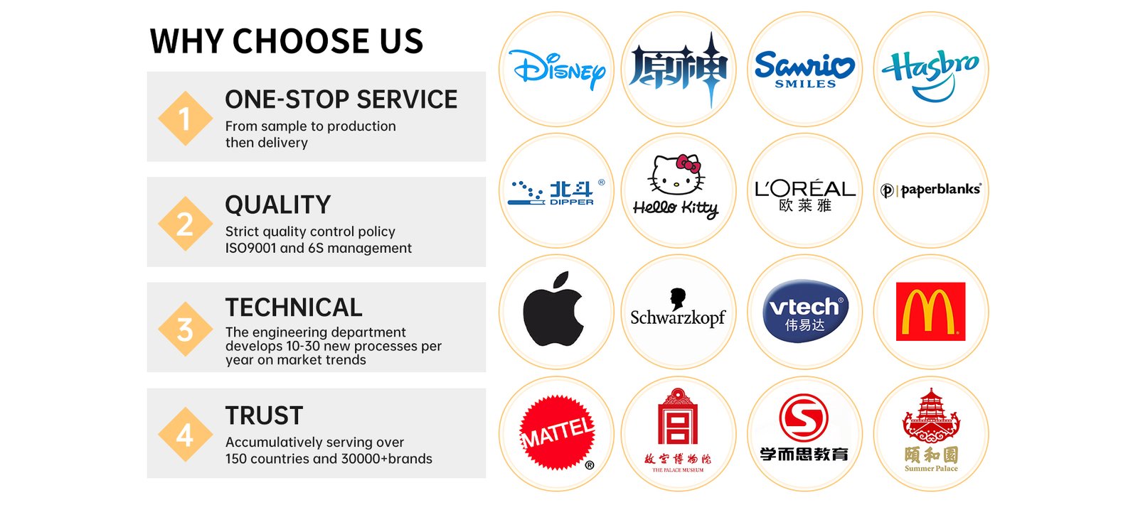 With 29 years of printing experience, we are a Disney-certified factory and hold certifications such as FSC, ISO 9001, CE, and EN71. We are a Top 50 Chinese Printing Company and have been recognized as one of the “Top 50 Most Influential Brands in China’s Label Industry” for three consecutive years. We have also received numerous industry awards, including the “Asian Label Silver Award.”