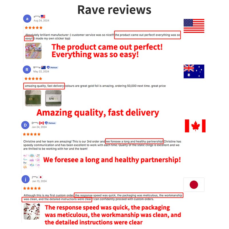 After receipt of the goods, if there is any wrong printing, missing printing or inconsistency with the design draft, if it is caused by our company, we will take the responsibility and provide you with new goods as soon as possible (excluding the costs other than stickers).